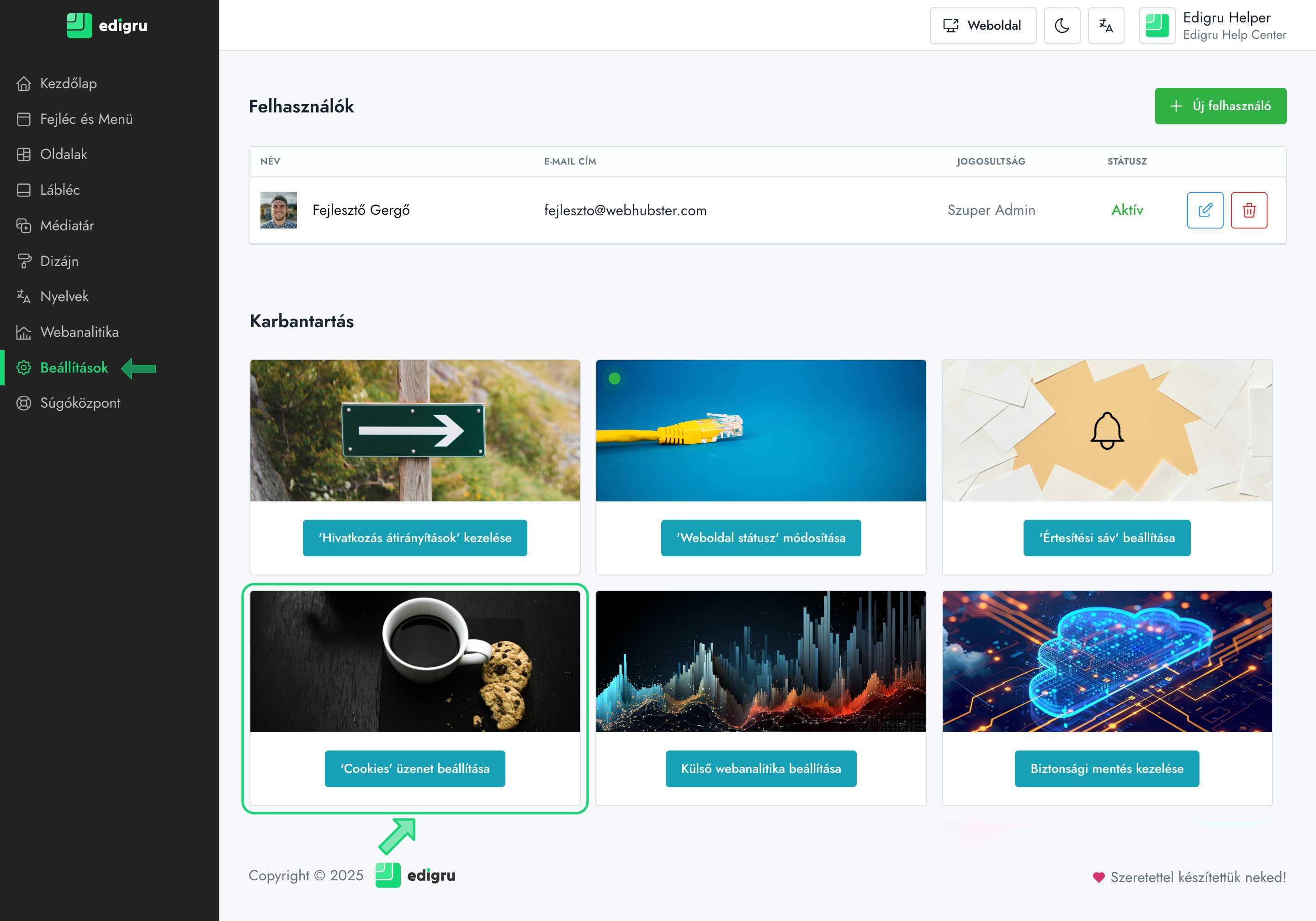 Útmutatók>Alapismeretek>Süti (cookie) üzenet beállítása