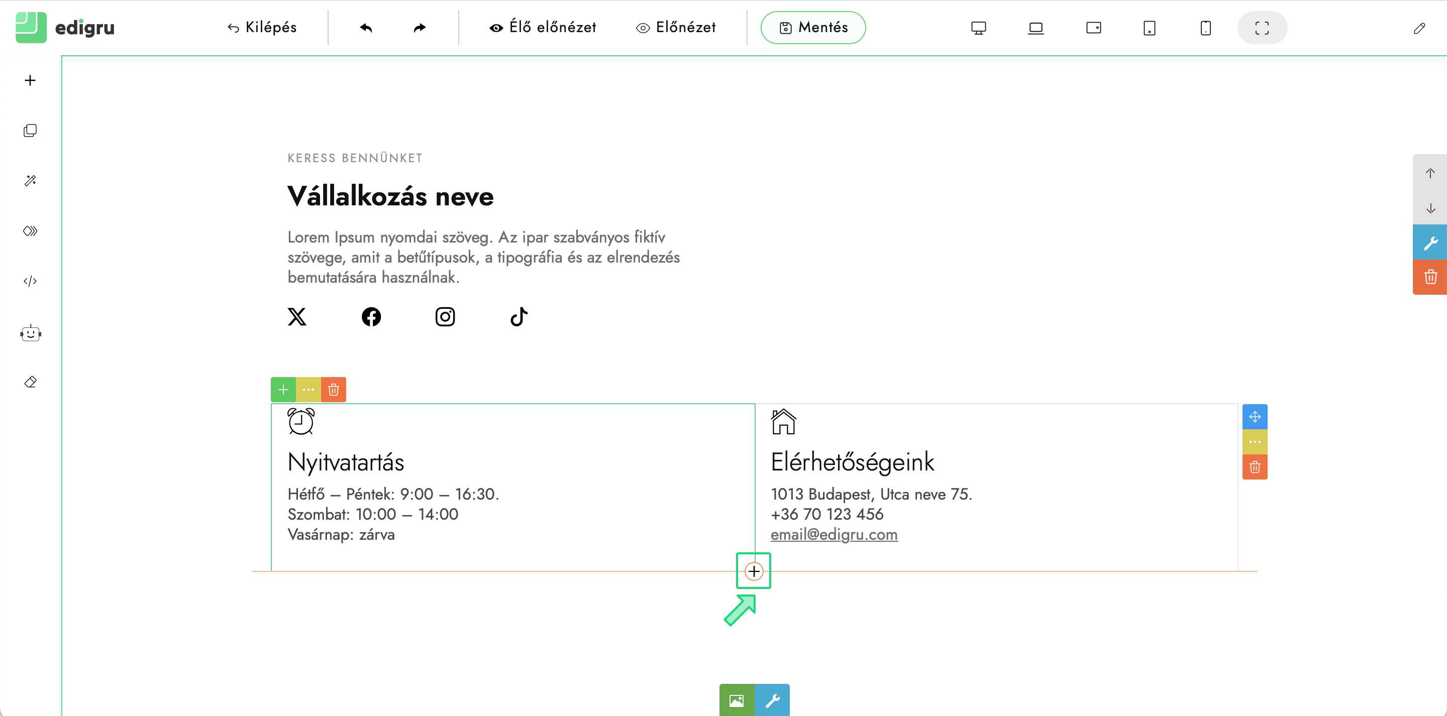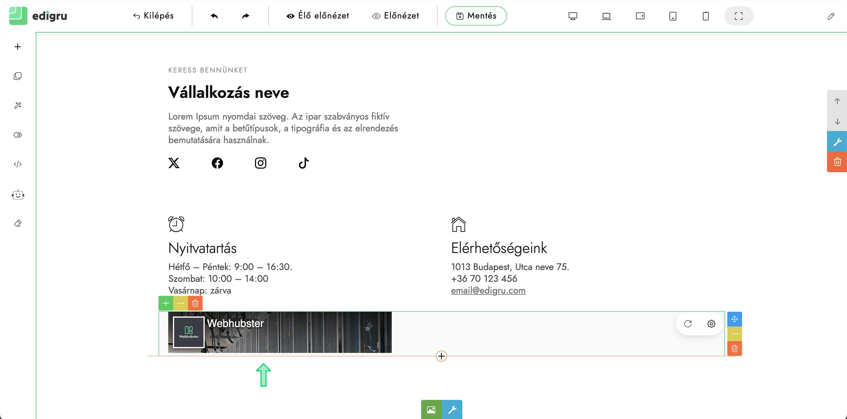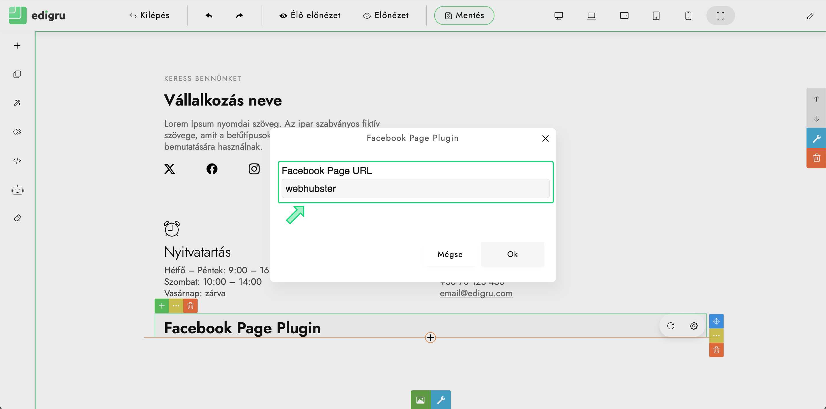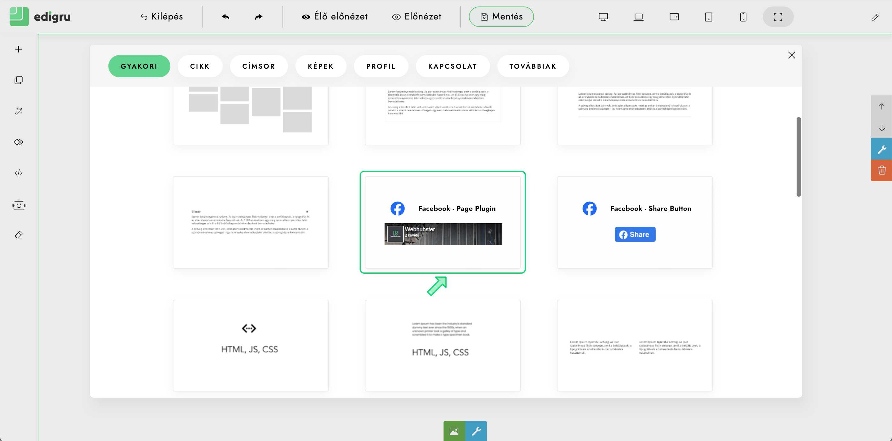 Leírás arról, hogyan illesszük be facebook profilunk oldalát honlapunkra edigru rendszerben.