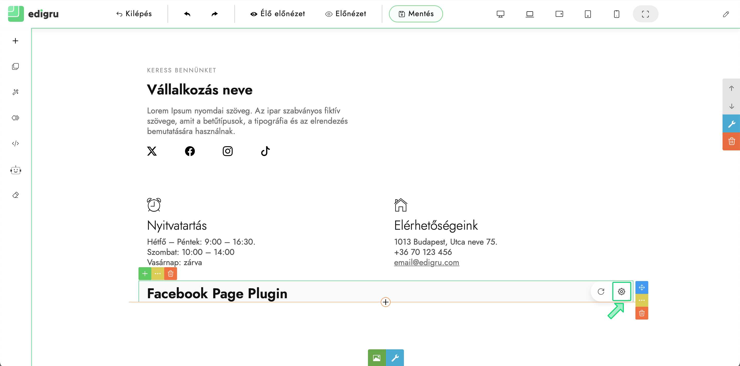 6) Ellenőrizd, hogy megfelelően megjelenik a beillesztett Facebook oldal. Szükség esetén módosíthatod az elhelyezkedését.