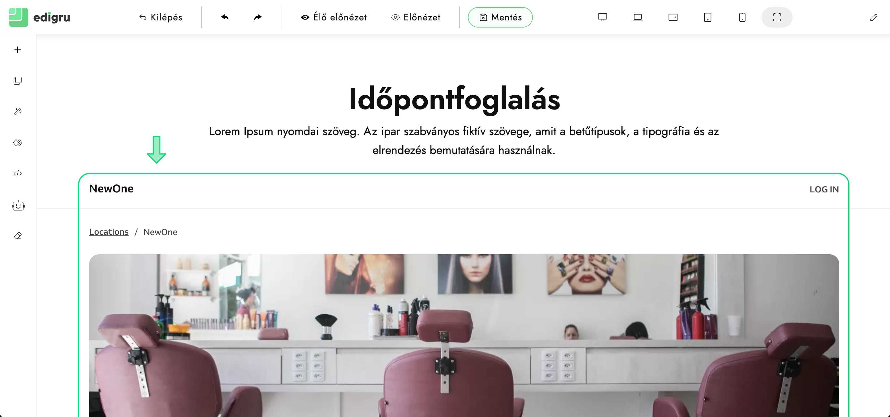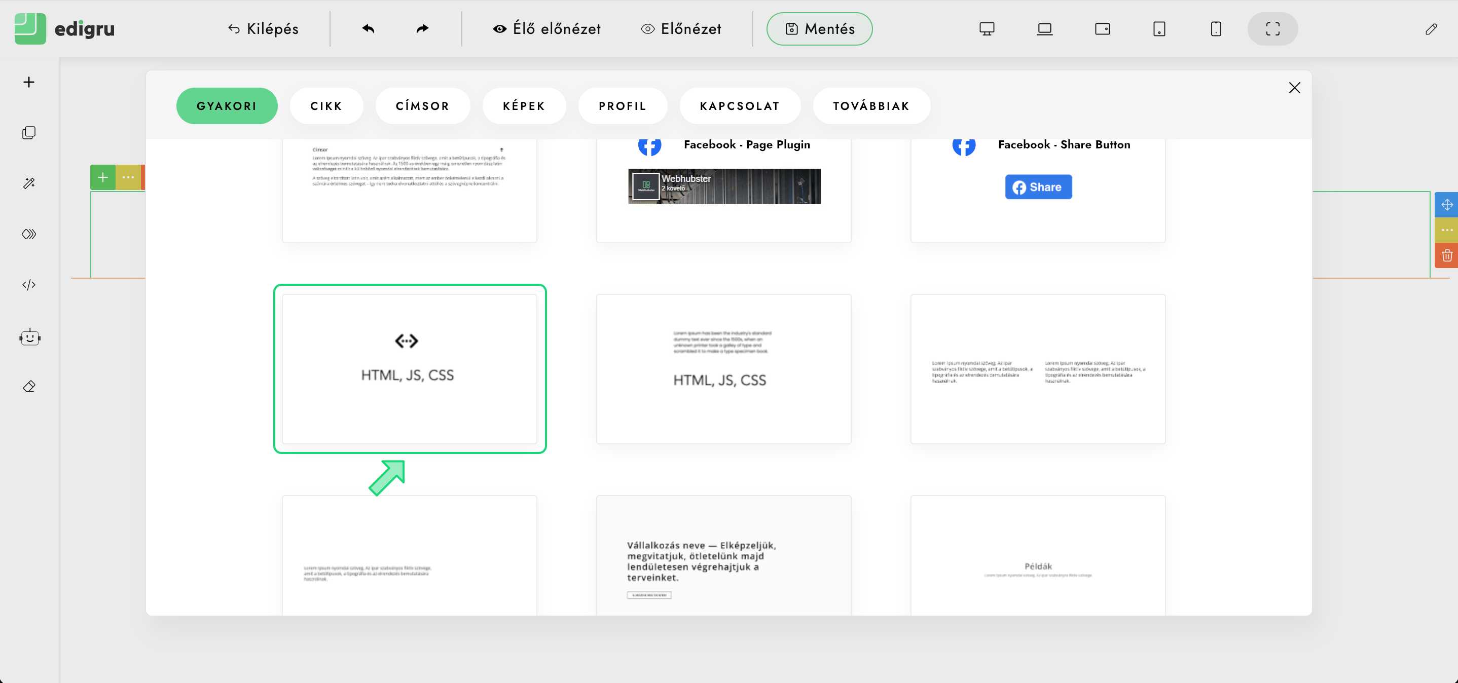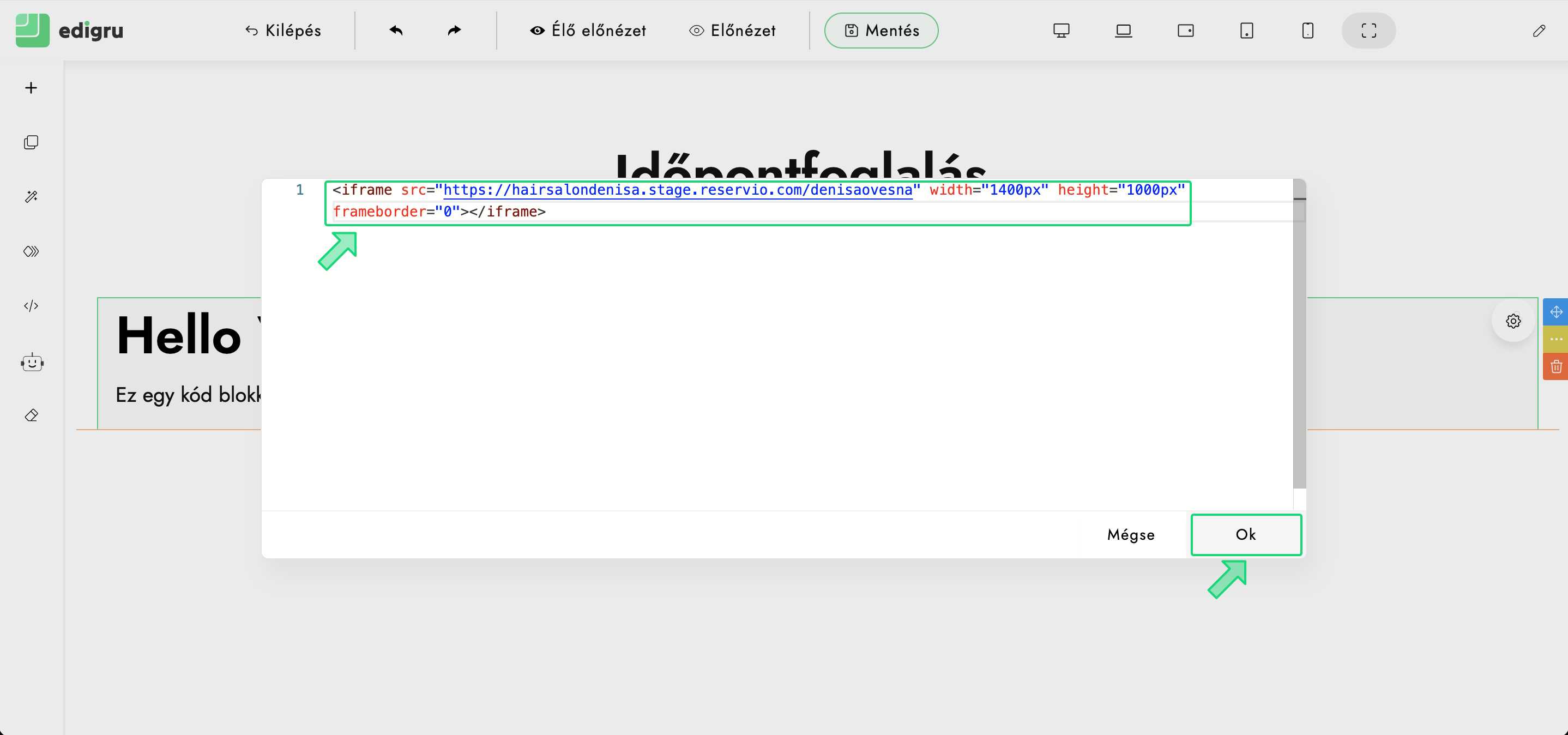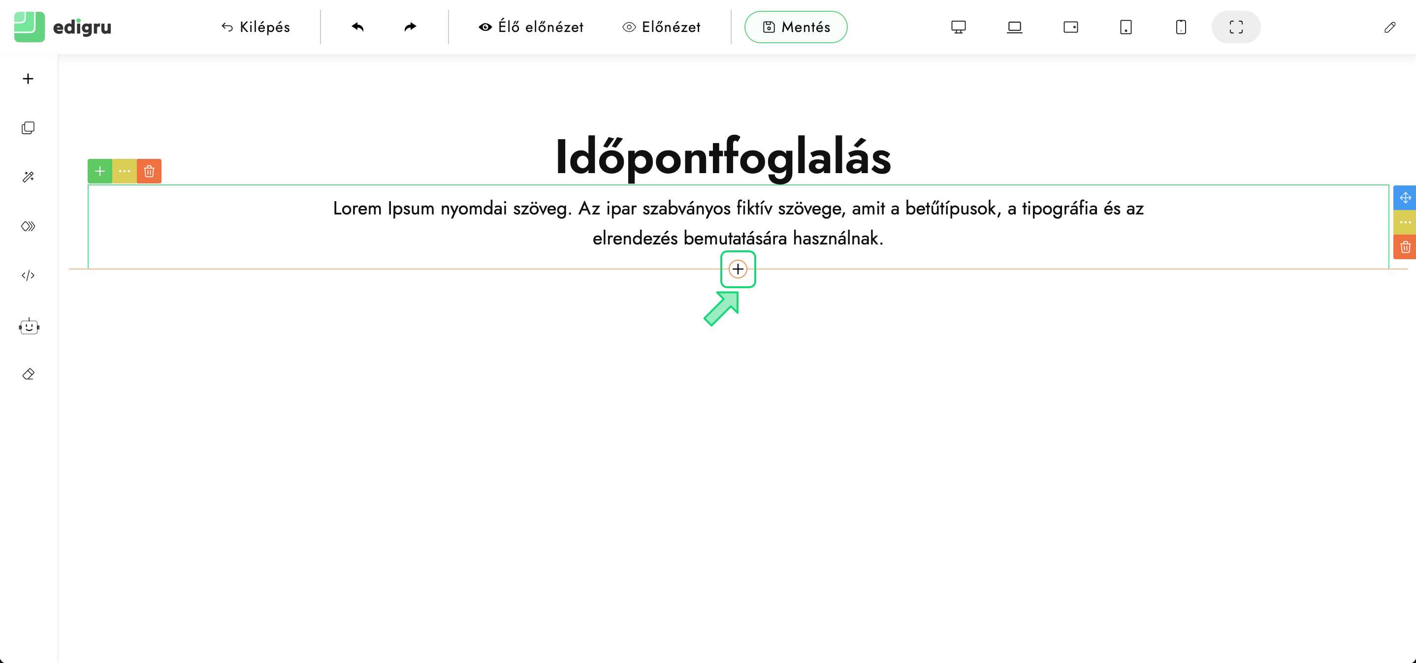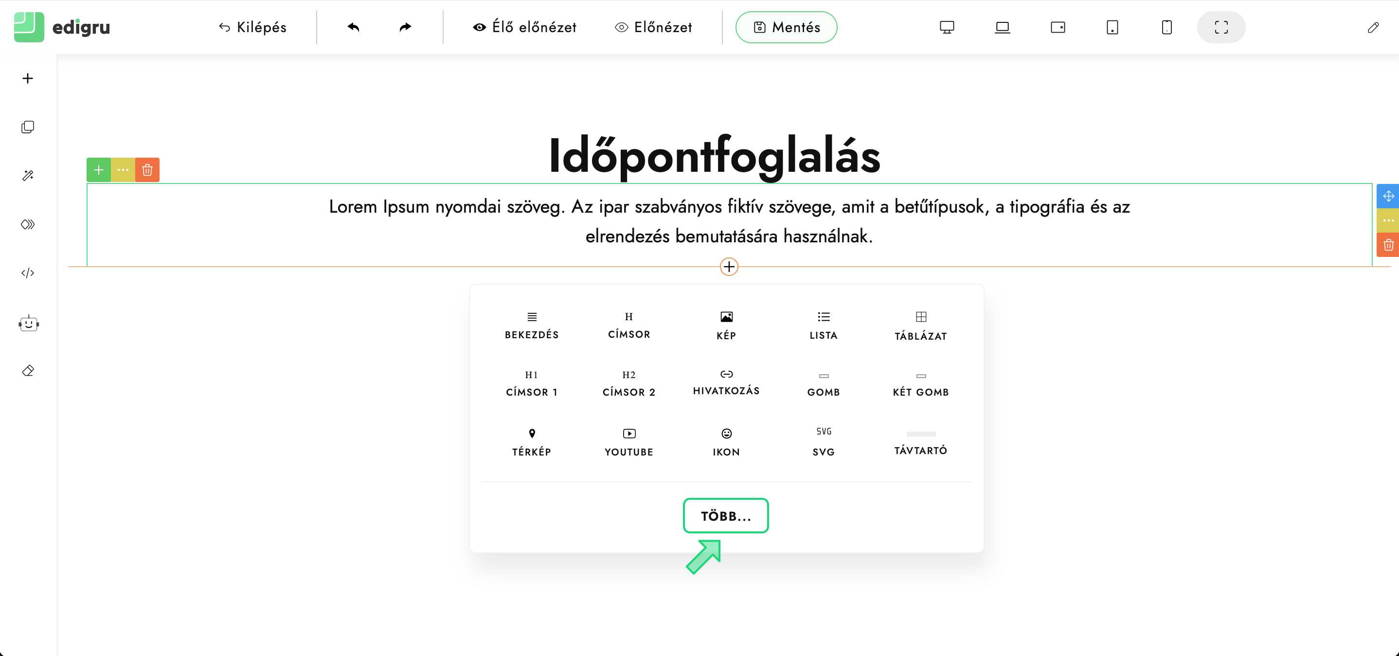 Leírás arról, hogyan adjunk hozzá weboldalunkhoz Reservio foglalási űrlapot edigru rendszerben honlapunk szerkesztésekor.
