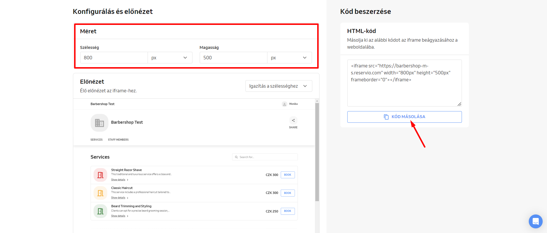 4) Másold ki a generált HTML kódot a "Kód másolása" gombra kattintva.