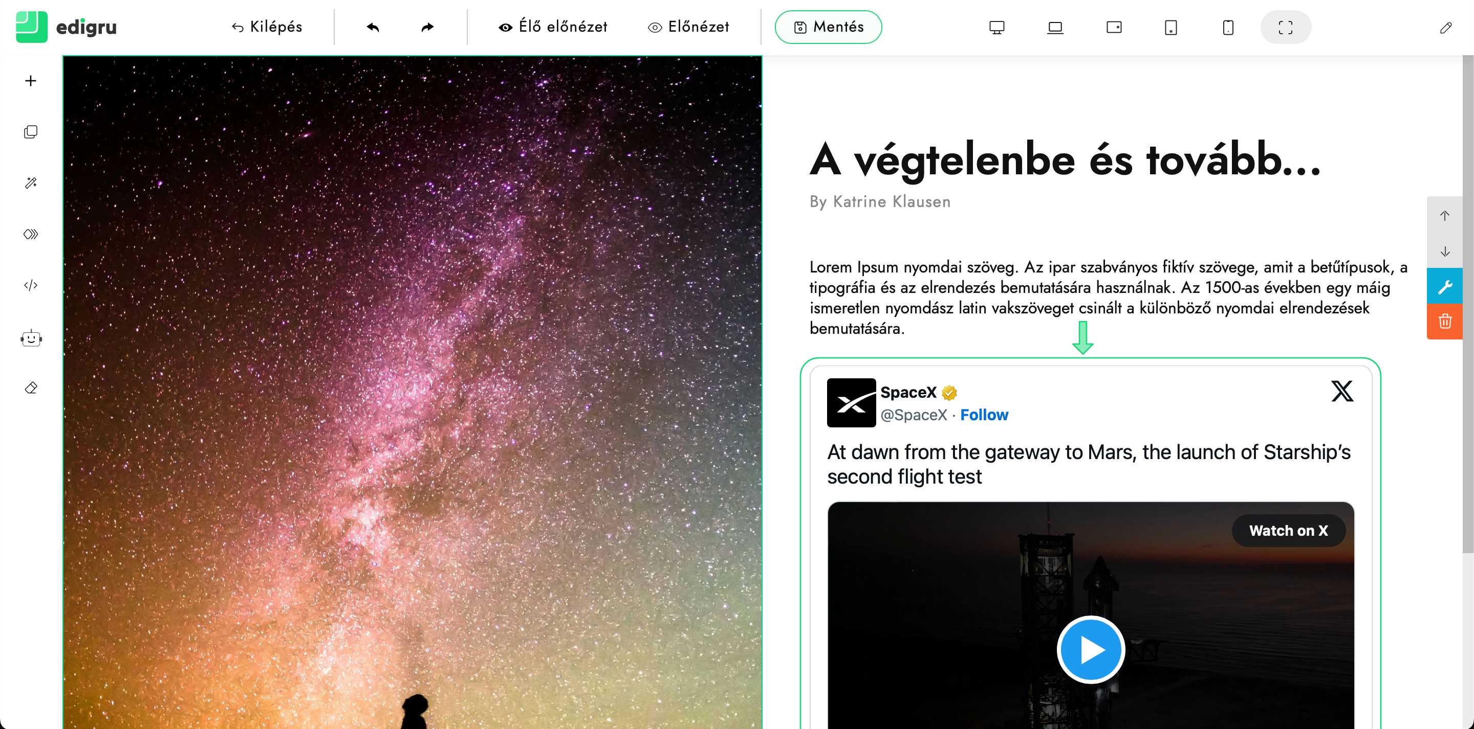 10) Ellenőrizd, hogy megfelelően megjelenik a beillesztett X elem. Szükség esetén módosíthatod az elhelyezkedését.