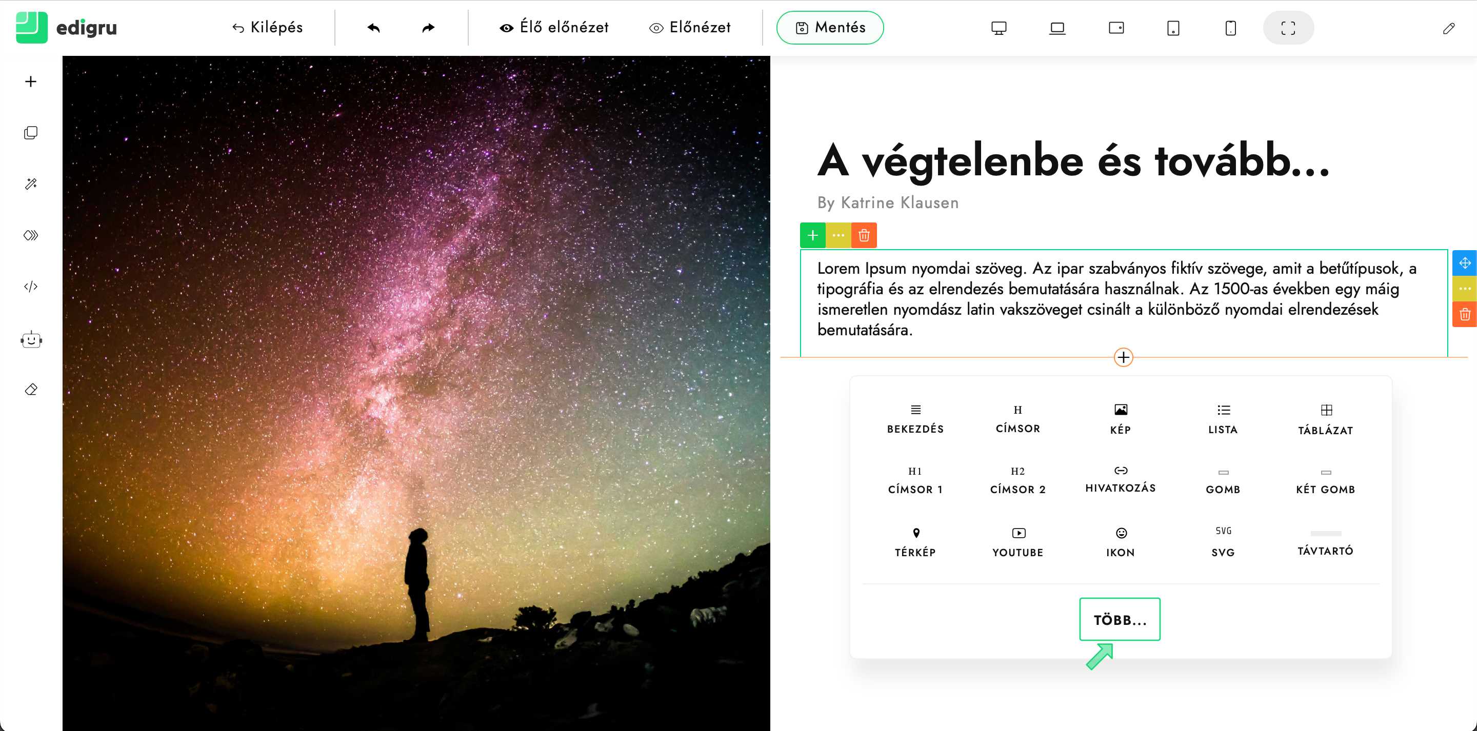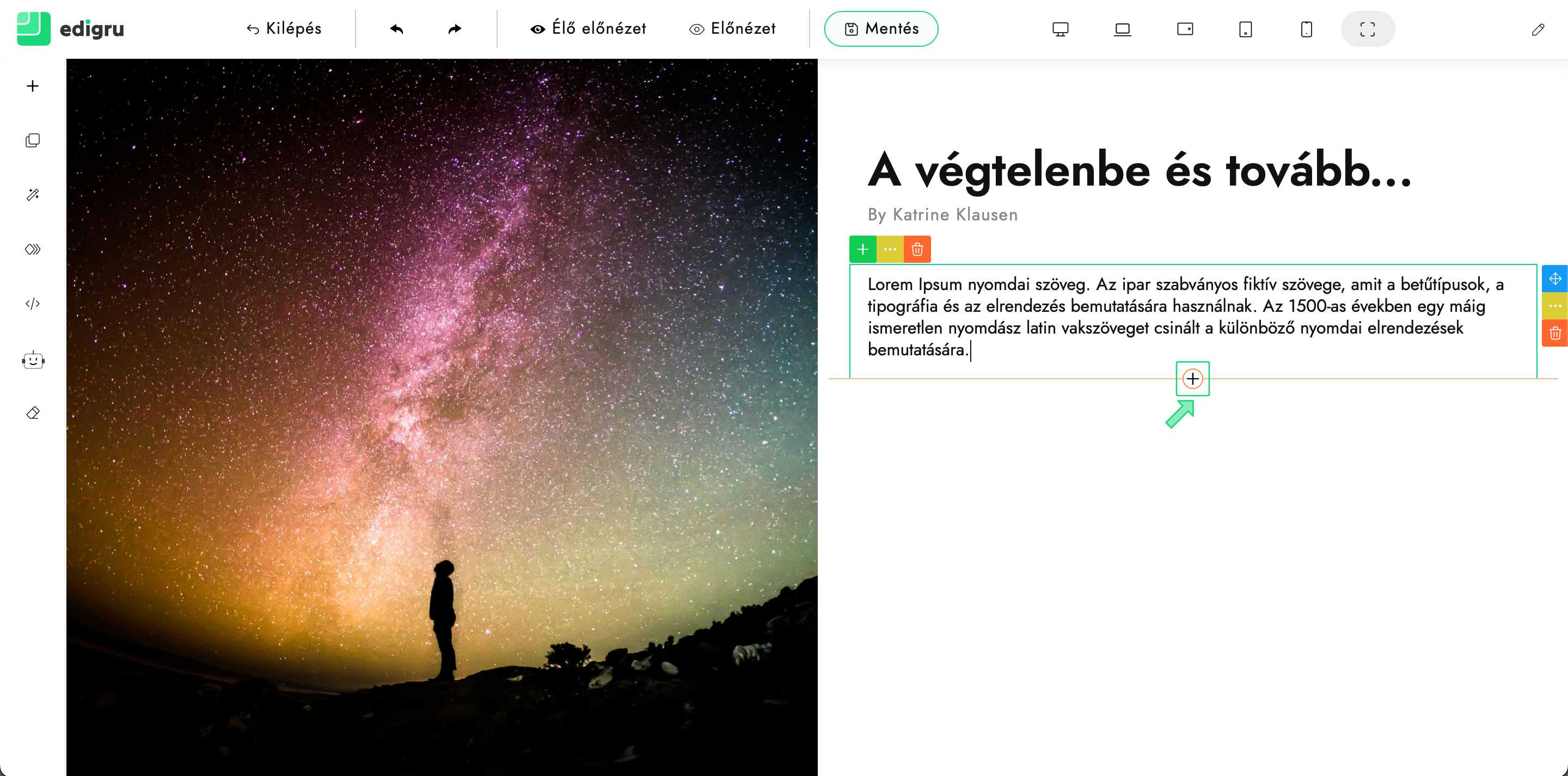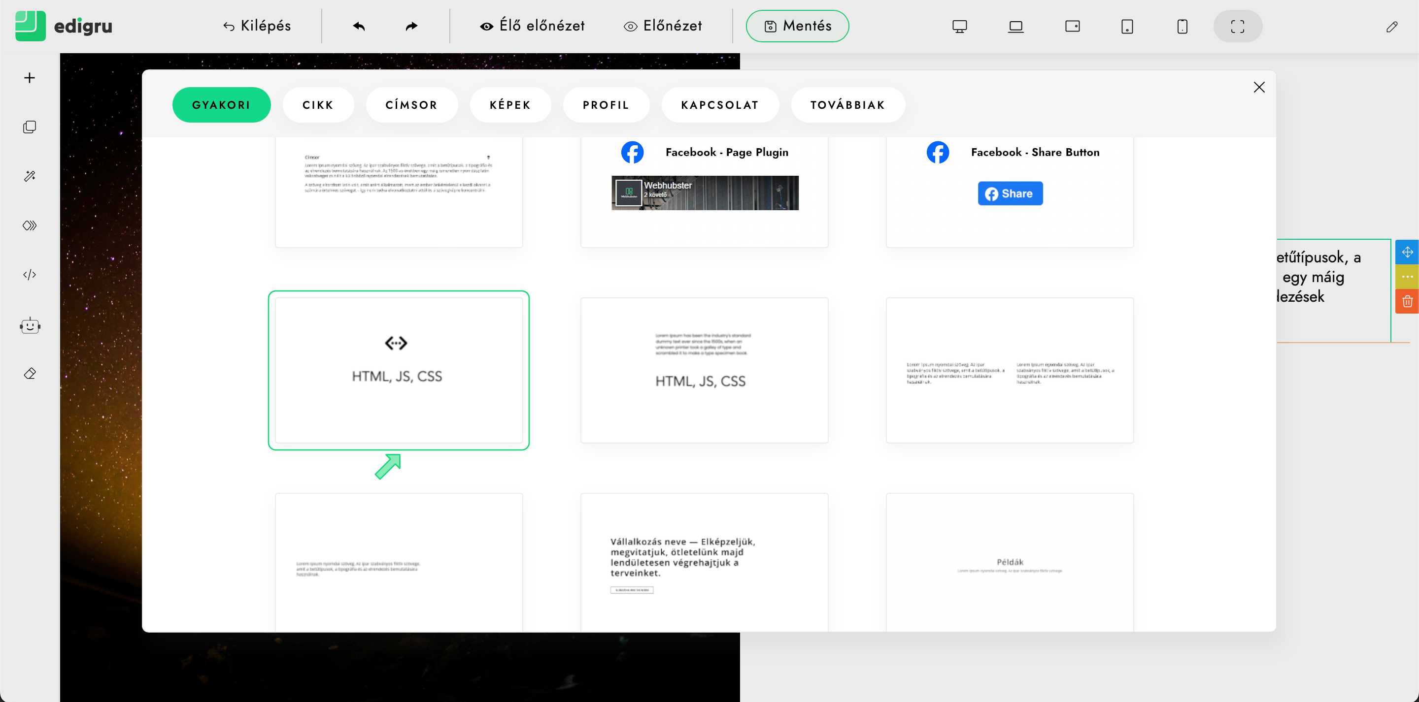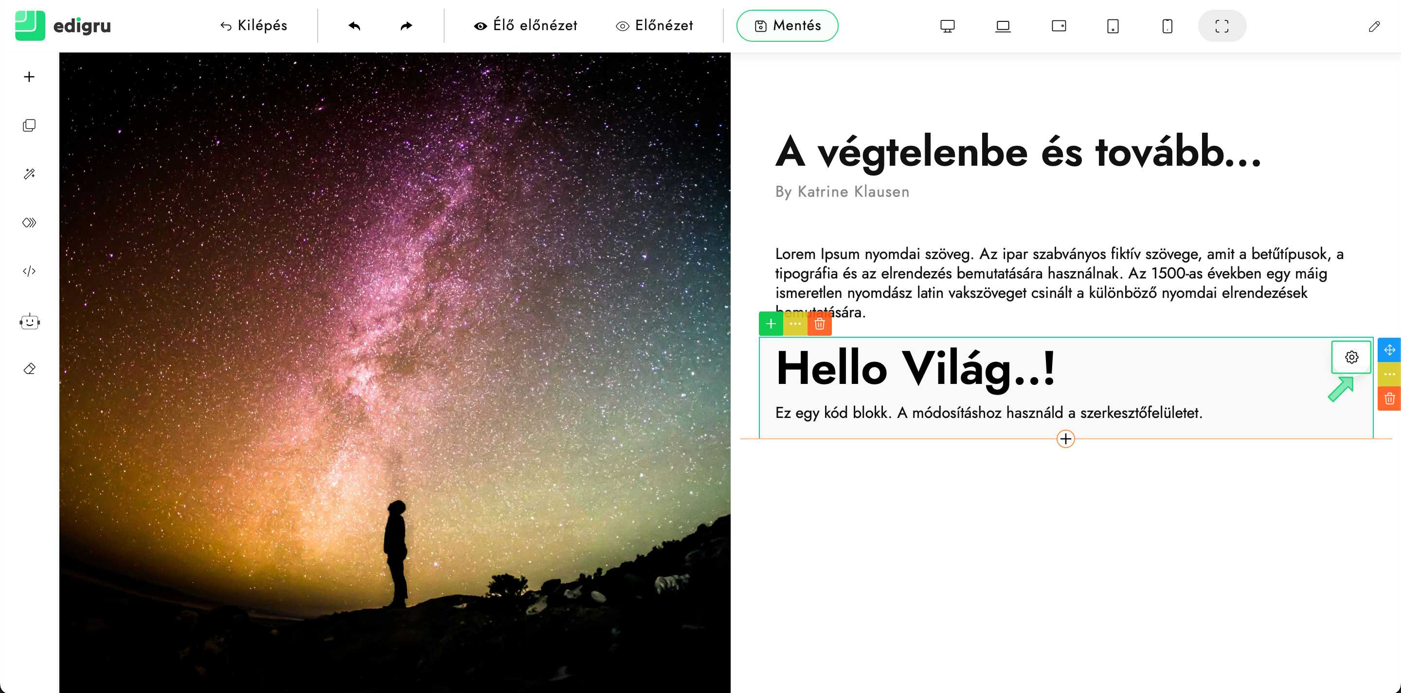 8) A beillesztett blokk kiválasztása után megjelenik a beállítások gomb („Fogaskerék” ikon). Kattints rá.