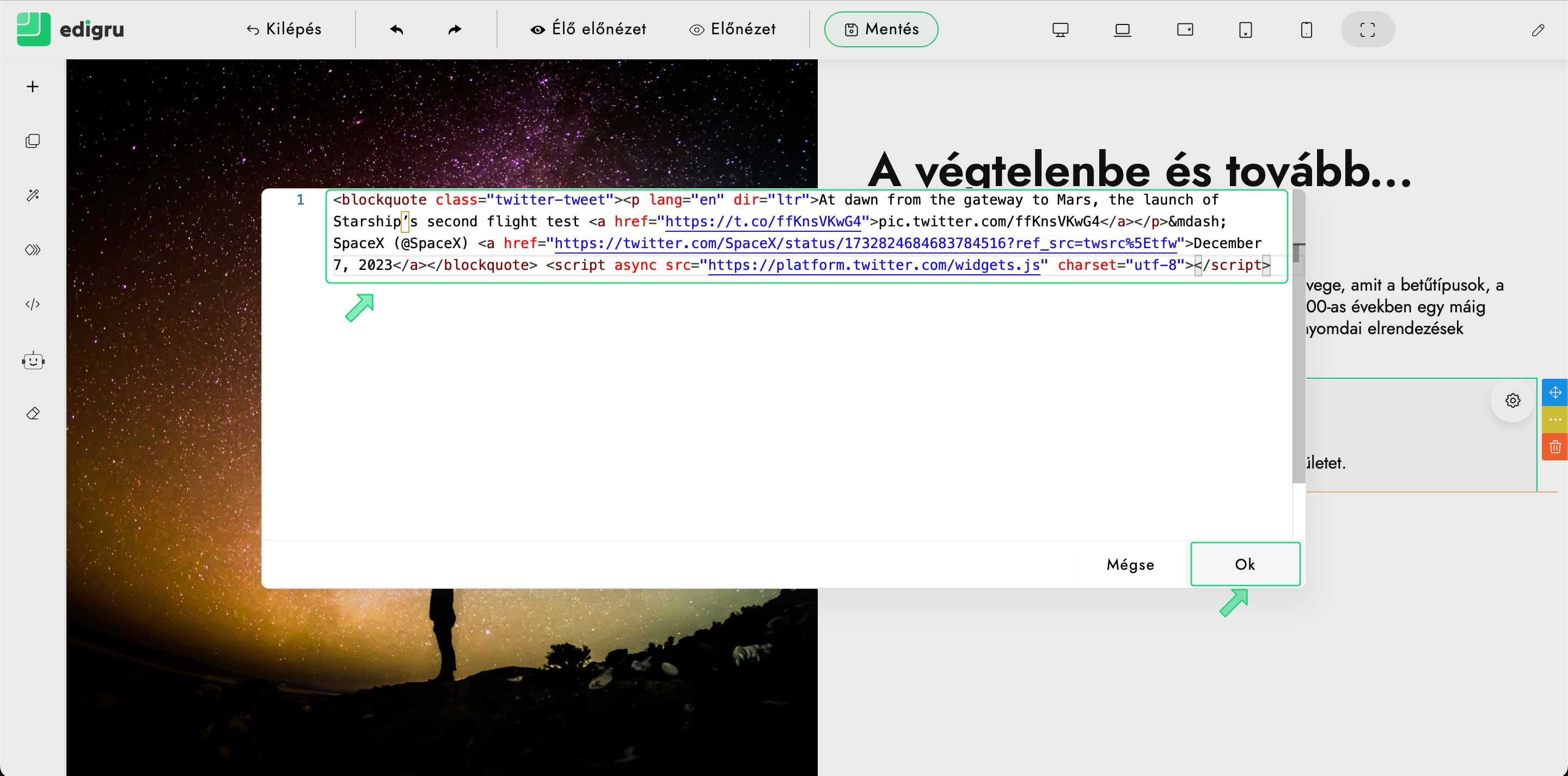 Leírás arról, hogyan illesszünk be X (Twitter) elemeket honlapunkba edigru rendszerben.