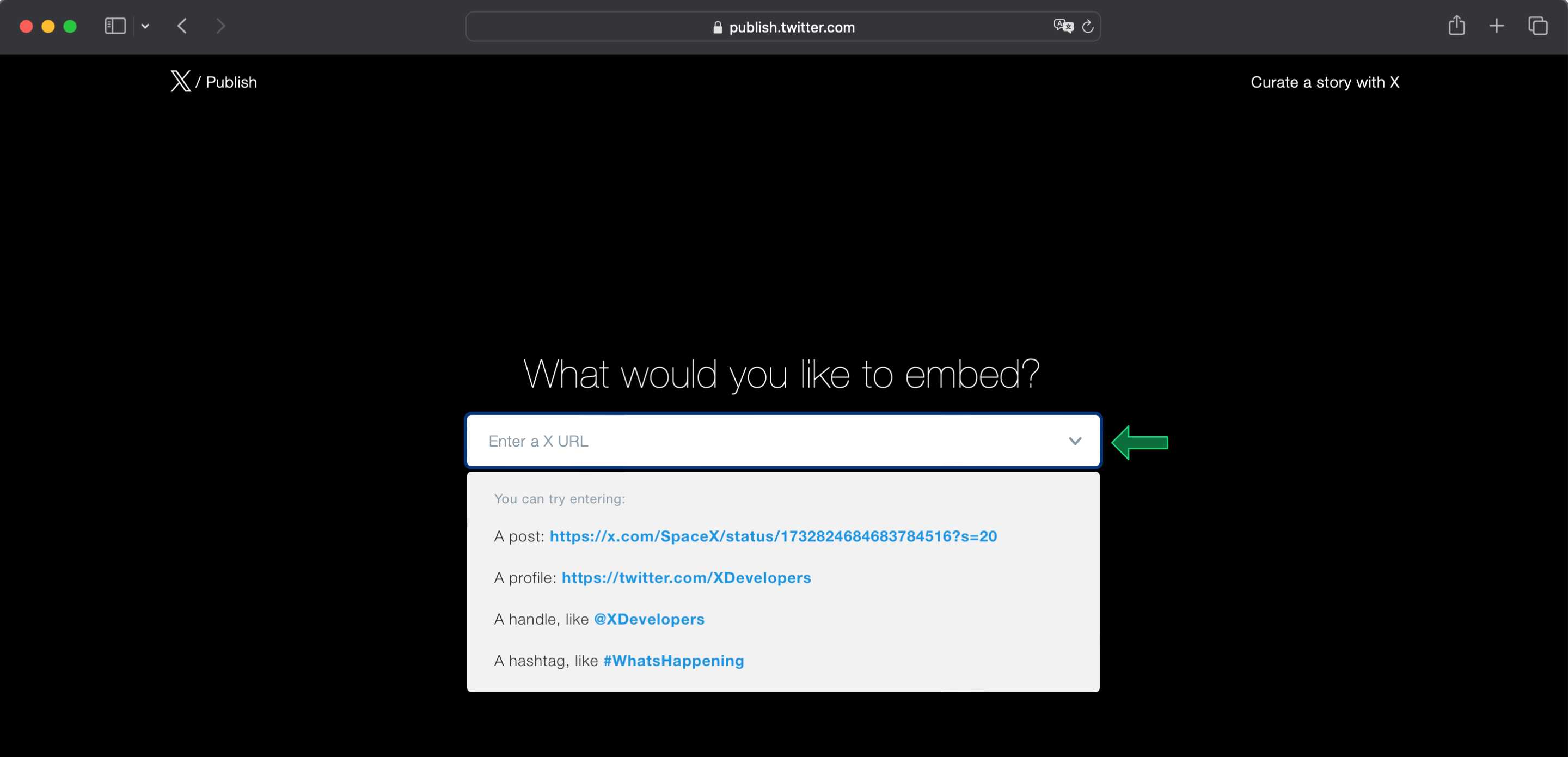 2) Kattints a "What would you like to embed?" szöveg alatti mezőre és add meg, hogy mit szeretnél megosztani.